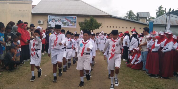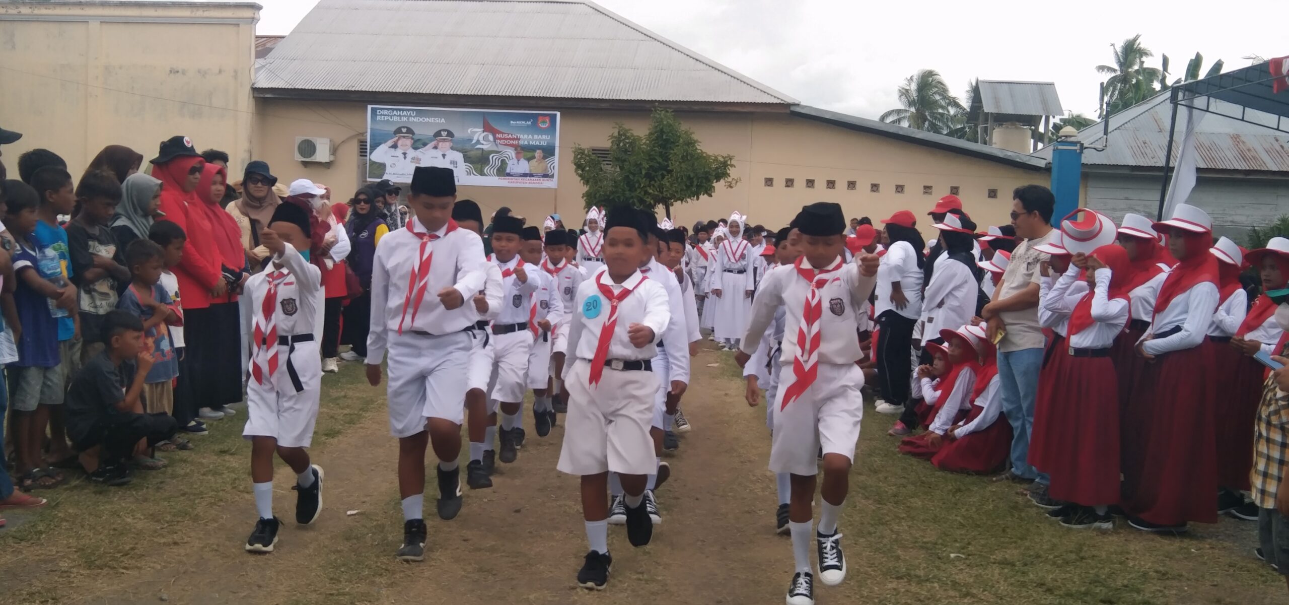 KILASBANGGAI.COM, BUNTA – Peringati HUT Republik Indonesia ke 79, siswa siswi SDN Hion, kecamatan Bunta, kabupaten Banggai mengikuti lomba gerak jalan.