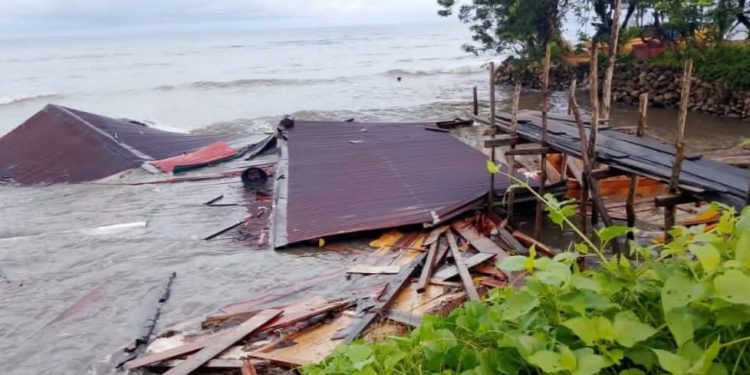 Badan Penanggulangan Bencana Daerah (BPBD) Banggai Kepulauan melaporkan musibah yang terjadi sekira pukul 01.00 WITA yang disertai dengan gelombang tinggi ini mengakibatkan rumah seorang warga yang berada di Desa Paisubatu roboh.
