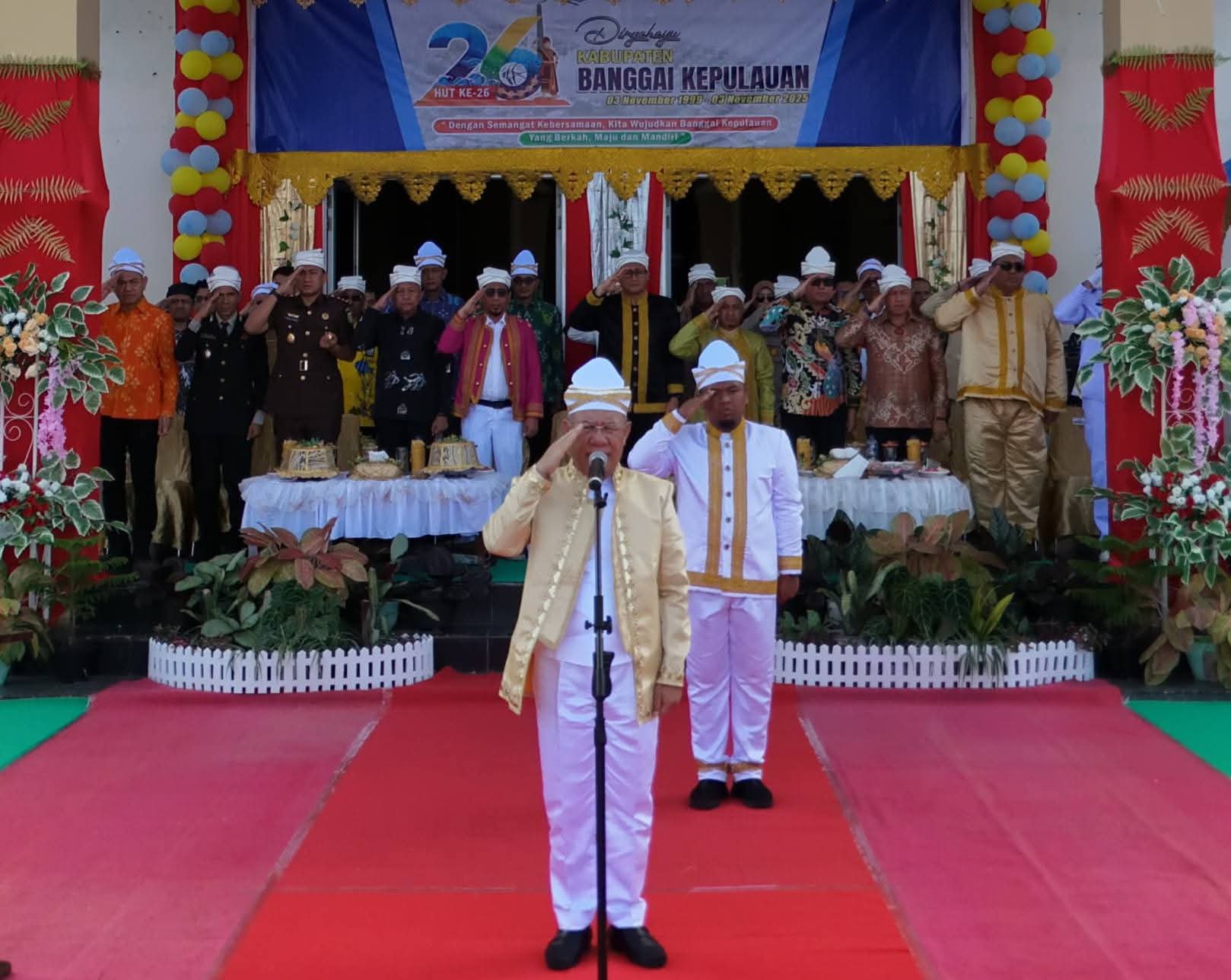 Bupati Banggai Kepulauan, Rusli Moidady, bertindak sebagai inspektur upacara mengucapkan rasa syukur atas perjalanan panjang Kabupaten Banggai Kepulauan selama 26 tahun sejak berdirinya pada 3 November 1999.