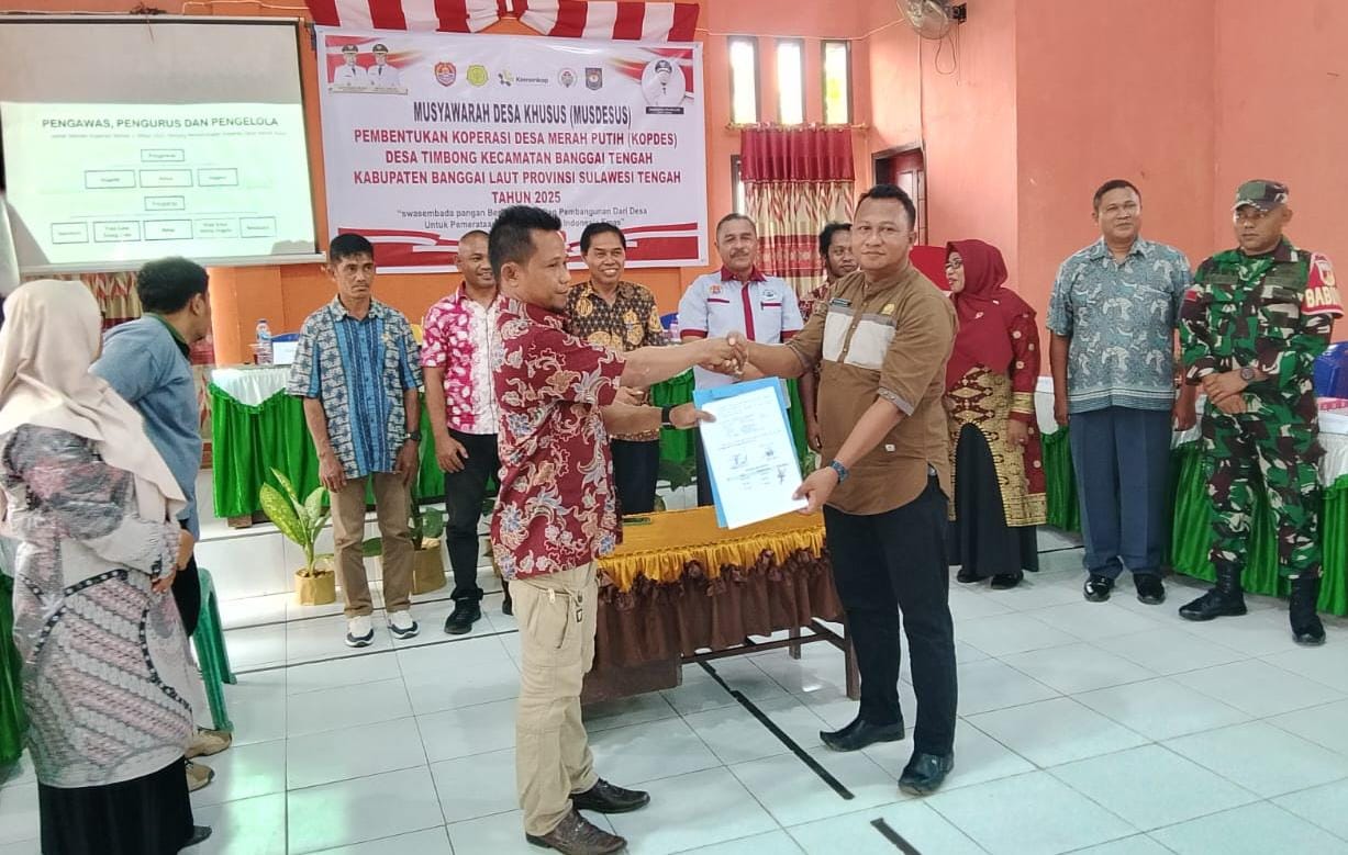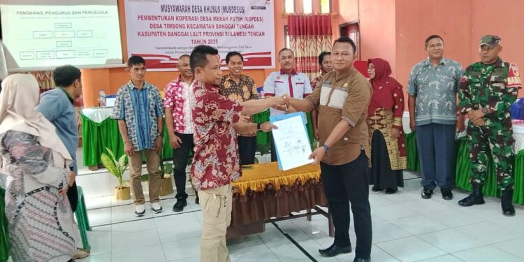 KILASBANGGAI.COM, BANGGAI LAUT– Pemerintah Desa (Pemdes) Timbong, Kecamatan Banggai Tengah, Kabupaten Banggai Laut, Sulawesi Tengah, menggelar Musyawarah Desa (Musdes) untuk membentuk Koperasi Desa Merah Putih, Kamis (26/6/2025).