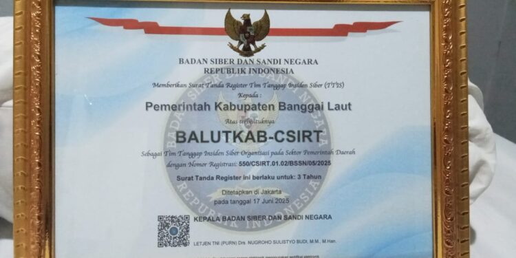 Peresmian ini ditandai dengan penyerahan Surat Tanda Register (STR) oleh Badan Siber dan Sandi Negara (BSSN) kepada perwakilan Pemerintah Kabupaten Banggai Laut di Jakarta, Selasa (22/7/2025).