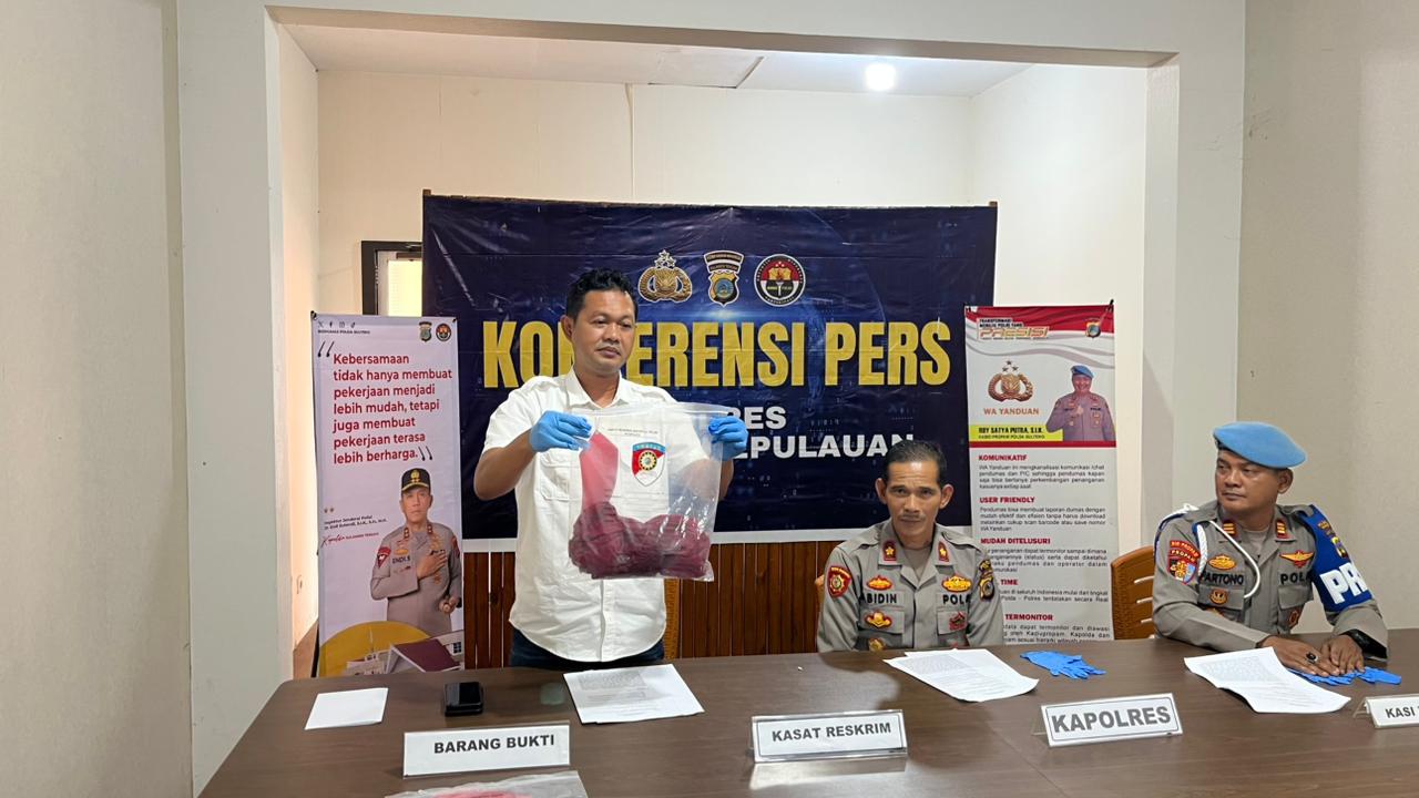 KILASBANGGAI.COM, SALAKAN- Polres Banggai Kepulauan menggelar konferensi pers terkait penanganan kasus penganiayaan berat yang terjadi di Jalan Beringin, Kelurahan Lompio, Kecamatan Banggai, Kabupaten Banggai Laut, Sulawesi Tengah pada Selasa (13/1/2026).
