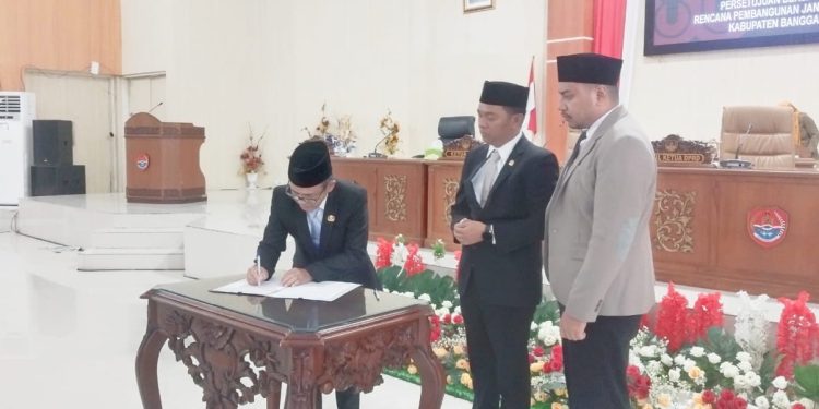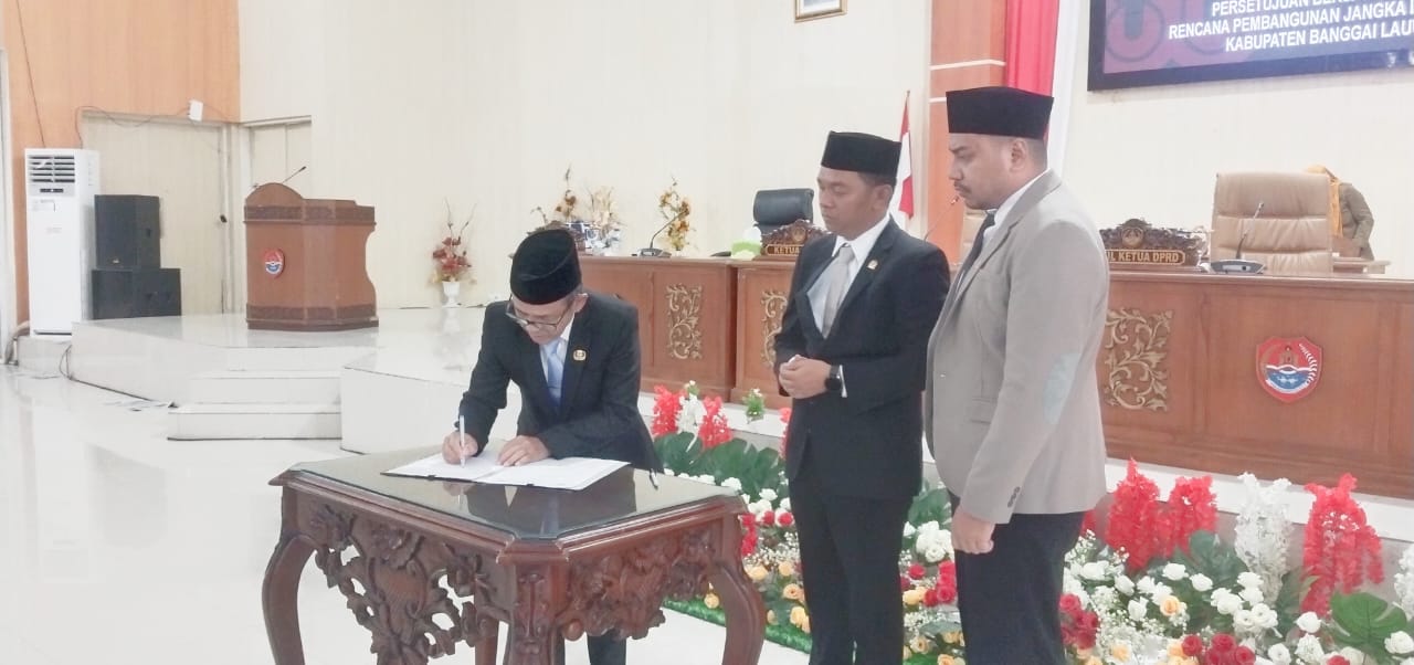 KILASBANGGAI.COM,BALUT- Dewan Perwakilan Rakyat Daerah (DPRD) Banggai Laut dan Pemerintah Kabupaten Banggai Laut secara resmi menyepakati Rancangan Peraturan Daerah (Raperda) tentang Rencana Pembangunan Jangka Menengah Daerah (RPJMD) Kabupaten Banggai Laut tahun 2025-2029. Penandatanganan persetujuan bersama ini dilakukan pada Rapat Paripurna DPRD yang berlangsung Selasa (16/9/2025).