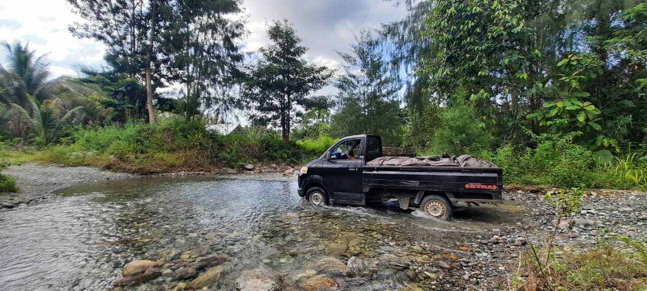 Yoan, seorang sopir pikap yang sering melintasi jalur ini, mengungkapkan bahwa meski saat ini kondisi jalan masih bisa dilalui karena musim panas, tetapi ketika musim hujan tiba, sungai tersebut menjadi sangat sulit dilewati.