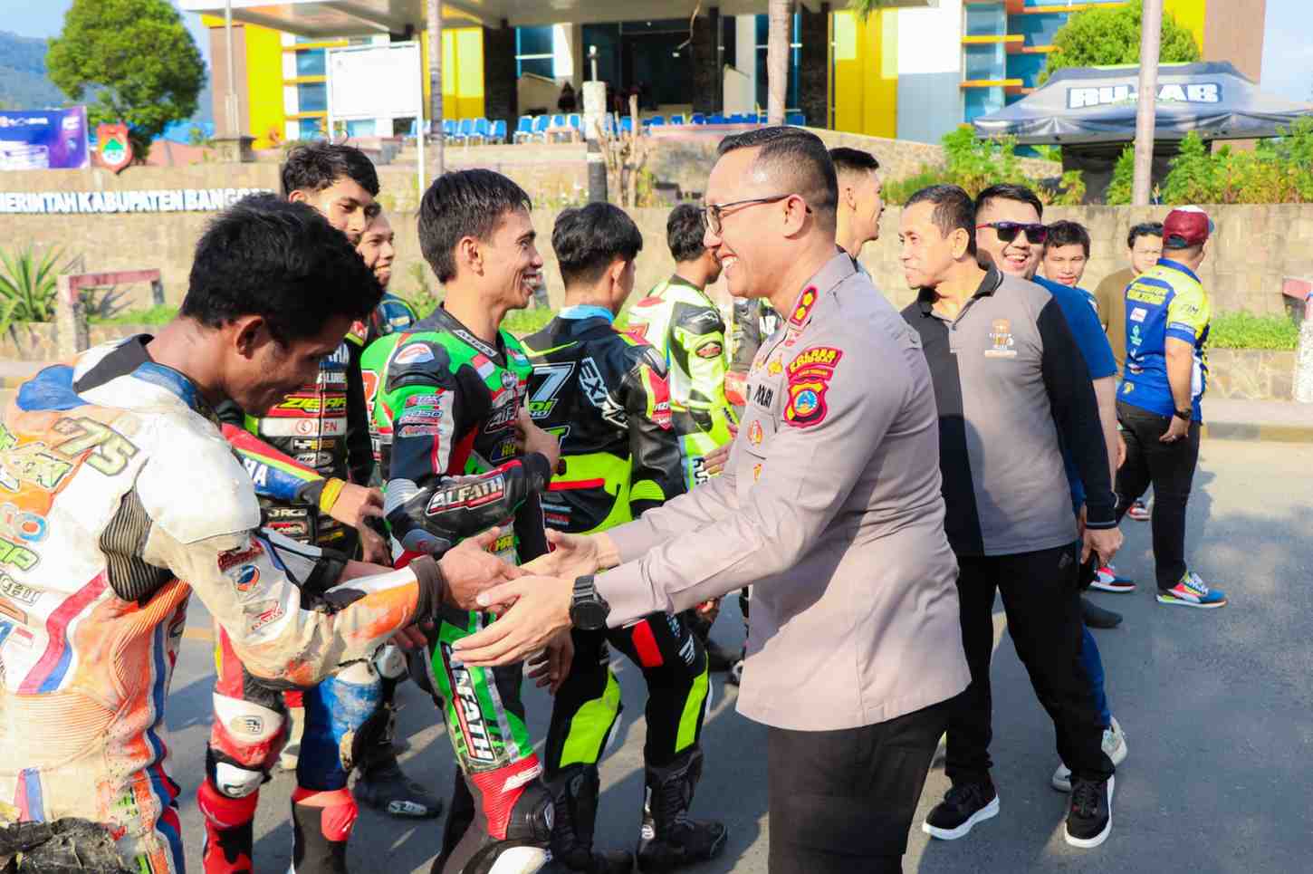 Kegiatan dikuti Kajari, Anggota DPRD Sulteng, Wakil II DPRD Banggai, Ketua Pengadilan Luwuk, Ketua IMI Banggai, Ketua panitia AKP Tio Tondy, Kasat Lantas AKP I Made Bagus Aditya dan 40 peserta Road Race.