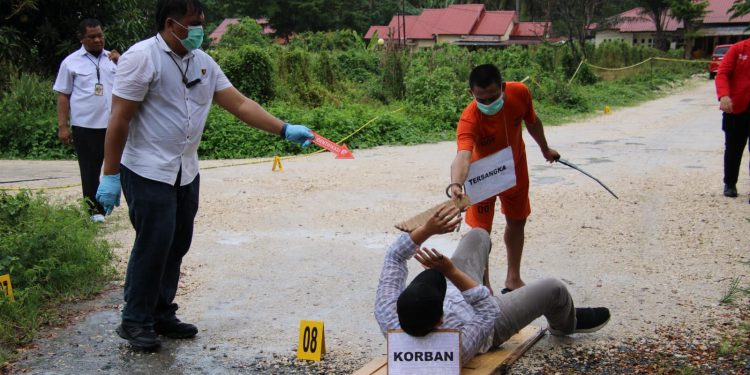 KILASBANGGAI.COM,LUWUK- Penyidik Unit 1 Satreskrim Polres Banggai menggelar rekonstruksi kasus pembunuhan dua warga di Desa Bolobungkang, Kecamatan Lobu, Kabupaten Banggai, Sulawesi Tengah, Rabu (25/2/2026).