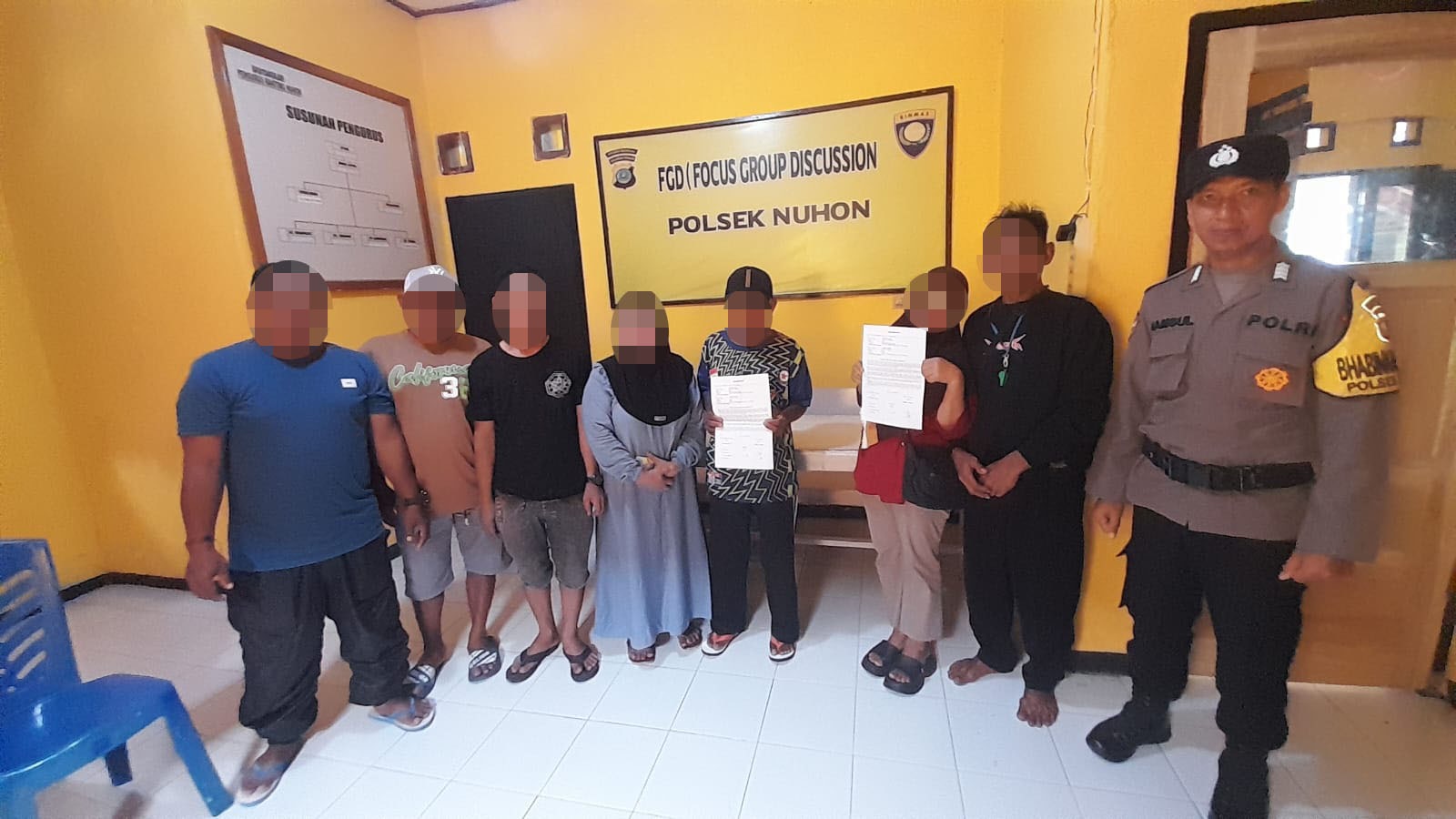 Problem Solving Mediasi yang dilaksanakan di Mako Polsek Nuhon dihadiri oleh kedua belah pihak dan masing-masing keluarga.
