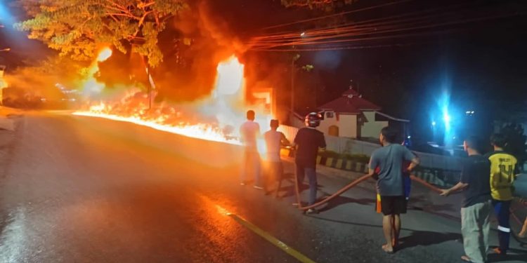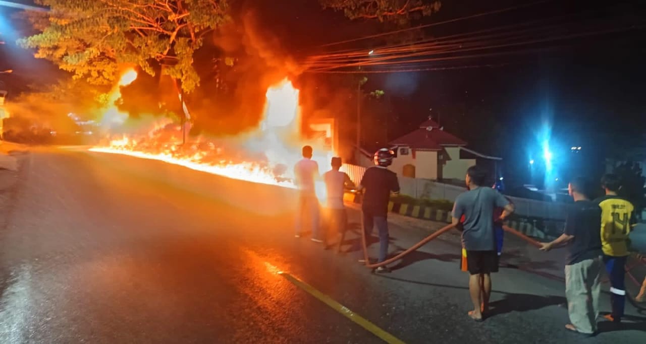KILASBANGGAI.COM, LUWUK-Sebuah mobil mengalami kebakaran hebat di depan Depot Pertamina Luwuk, Kabupaten Banggai, Sulawesi Tengah, Sabtu (8/11/2025) malam.