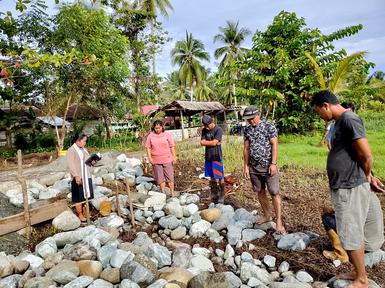 Kegiatan diawali dengan doa bersama yang dipimpin oleh Ibu Pdt. Olly Lamaya, S.Th, memohon penyertaan Tuhan agar pembangunan ini berjalan lancar dan membawa berkat bagi seluruh masyarakat.