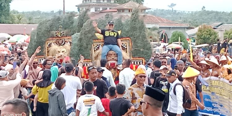 KILASBANGGAI.COM, TOILI- Bupati Banggai, Amirudin Tamoreka, disambut meriah oleh ribuan warga di Kecamatan Toili, Kabupaten Banggai, Sulawesi Tengah, Sabtu (17/5/2025).