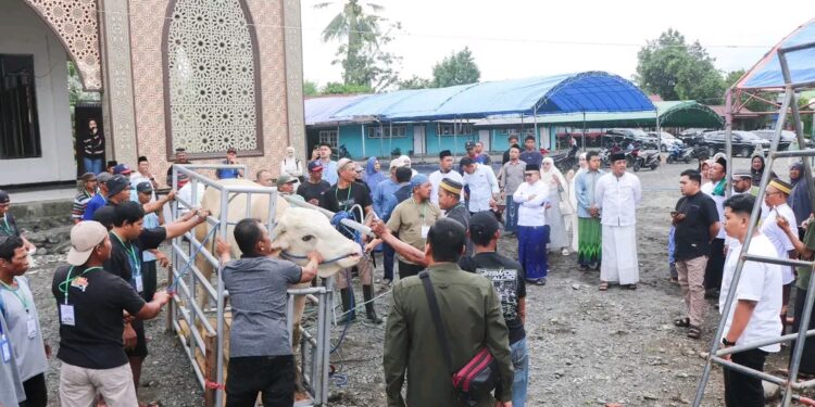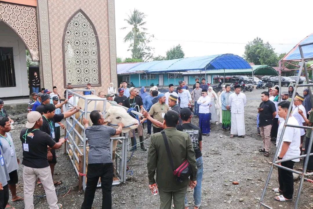 KILASBANGGAI.COM – Bupati Banggai Amirudin menyerahkan satu ekor sapi kurban bantuan kemasyarakatan dari Presiden Prabowo Subianto kepada jemaah Masjid Nurul Huda Desa Cendana Pura, Kecamatan Toili.