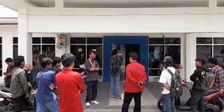 KILASBANGGAI.COM,LUWUK– Puluhan mahasiswa dari Gerakan Mahasiswa Nasional Indonesia (GMNI) dan Ikatan Mahasiswa Muhammadiyah (IMM) Luwuk menggelar aksi unjuk rasa di Kantor Dinas Perdagangan dan Perindustrian Kabupaten Banggai Jl Ir Soekarno Luwuk, Kamis (20/3/2025).