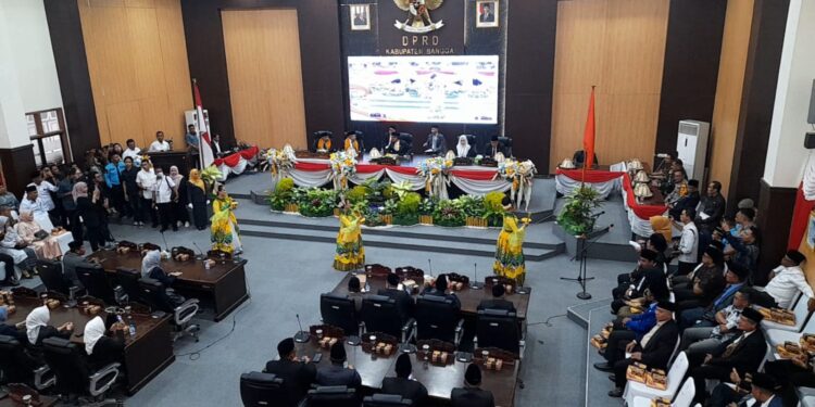 Rapat paripurna yang berlangsung di ruang sidang utama DPRD Banggai tersebut dipimpin langsung oleh Ketua DPRD, Saripudin Tjatjo, dan dihadiri para anggota DPRD, unsur Forum Koordinasi Pimpinan Daerah (Forkopimda), serta para kepala Organisasi Perangkat Daerah (OPD).