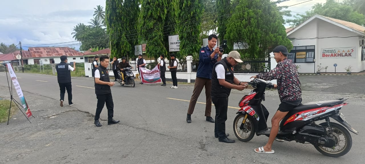 Usai upacara, kegiatan dilanjutkan pembagian ratusan stiker di 3 kantor camat, kelurahan dan beberapa kantor desa wilayah Kecamatan Bunta, Nuhon dan Simpang Raya.