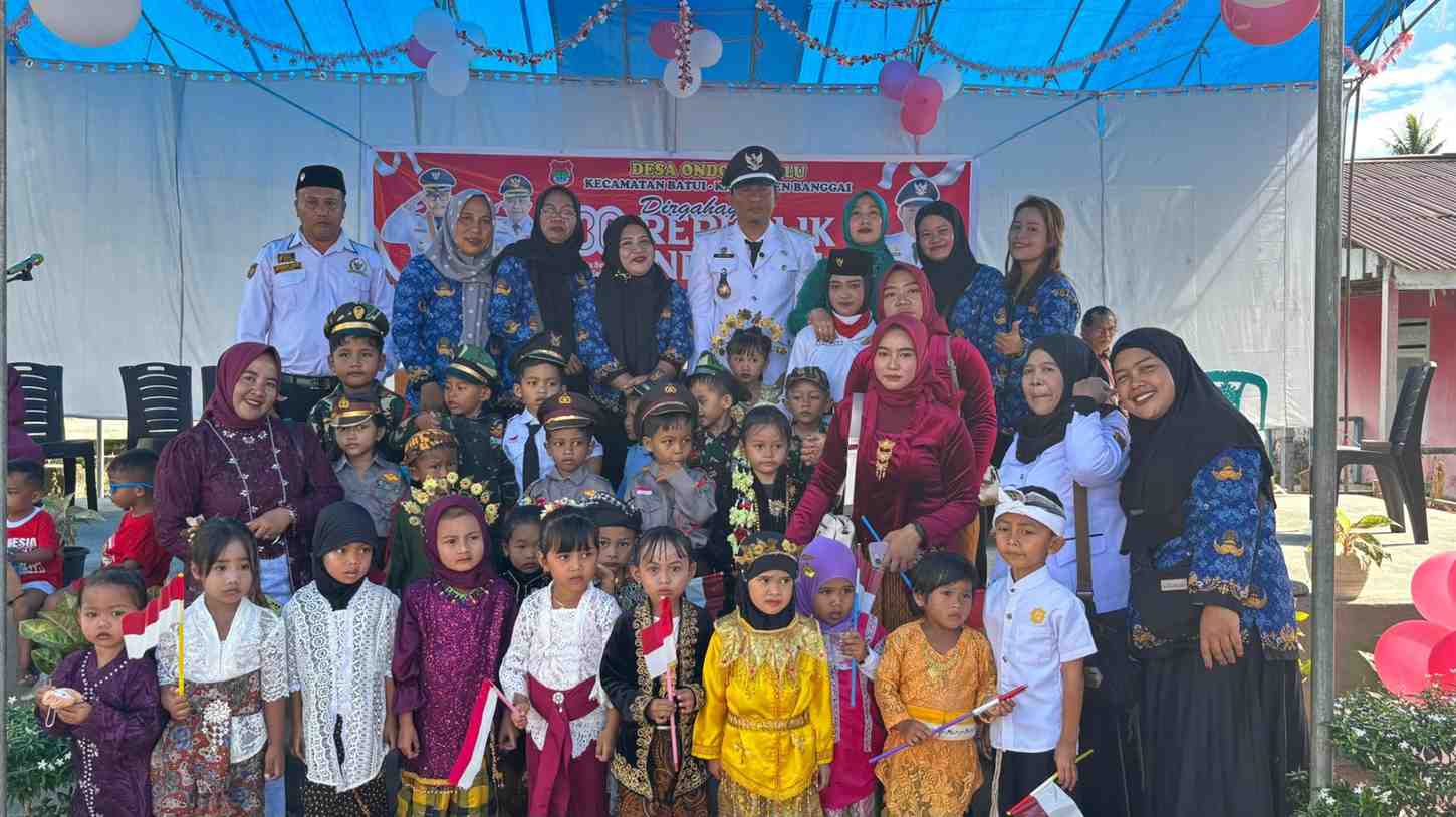KILASBANGGAI.COM, BATUI- Memperingati 80 tahun Kemerdekaan Republik Indonesia, Desa Ondo – Ondolu, Kecamatan Batui, Kabupaten Banggai, Sulawesi Tengah menggelar upacara bendera yang berlangsung khidmat dan penuh semangat, Minggu (17/8/2025). Upacara yang dipimpin langsung oleh Kepala Desa Muh. Yunus ini diadakan di lapangan balai desa yang baru saja dibangun secara khusus.