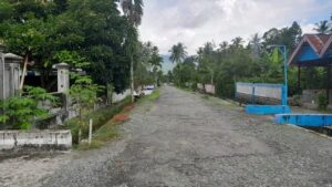 Kerusakan jalan itu mulai dirasakan dari pintu masuk ke desa hingga ke pemukiman warga.