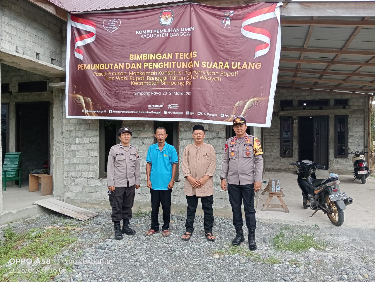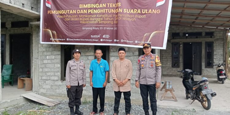 KILASBANGGAI.COM – Kapolsek Bunta IPDA Andi Wijanarko melakukan pengecekan keamanan gudang logistik PPK untuk Pemungutan Suara Ulang (PSU) Pilkada Banggai di Sekretariat Kecamatan Simpang Raya, Selasa (1/4/2025).