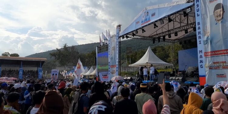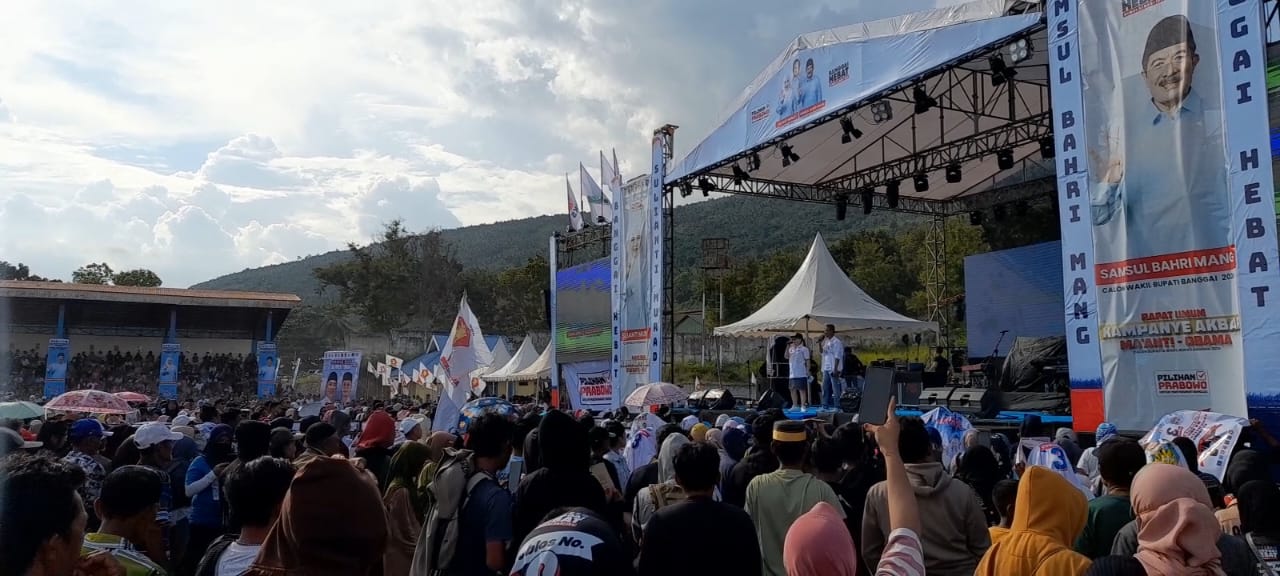 KILASBANGGAI.COM,LUWUK- Ribuan masyarakat memadati GOR Kilongan, Kecamatan Luwuk Utara, Kabupaten Banggai untuk mengikuti kampanye akbar pasangan calon Bupati dan Wakil Bupati Banggai nomor urut 3, Sulianti Murad-Samsul Bahri Mang, Rabu (20/11/2024).