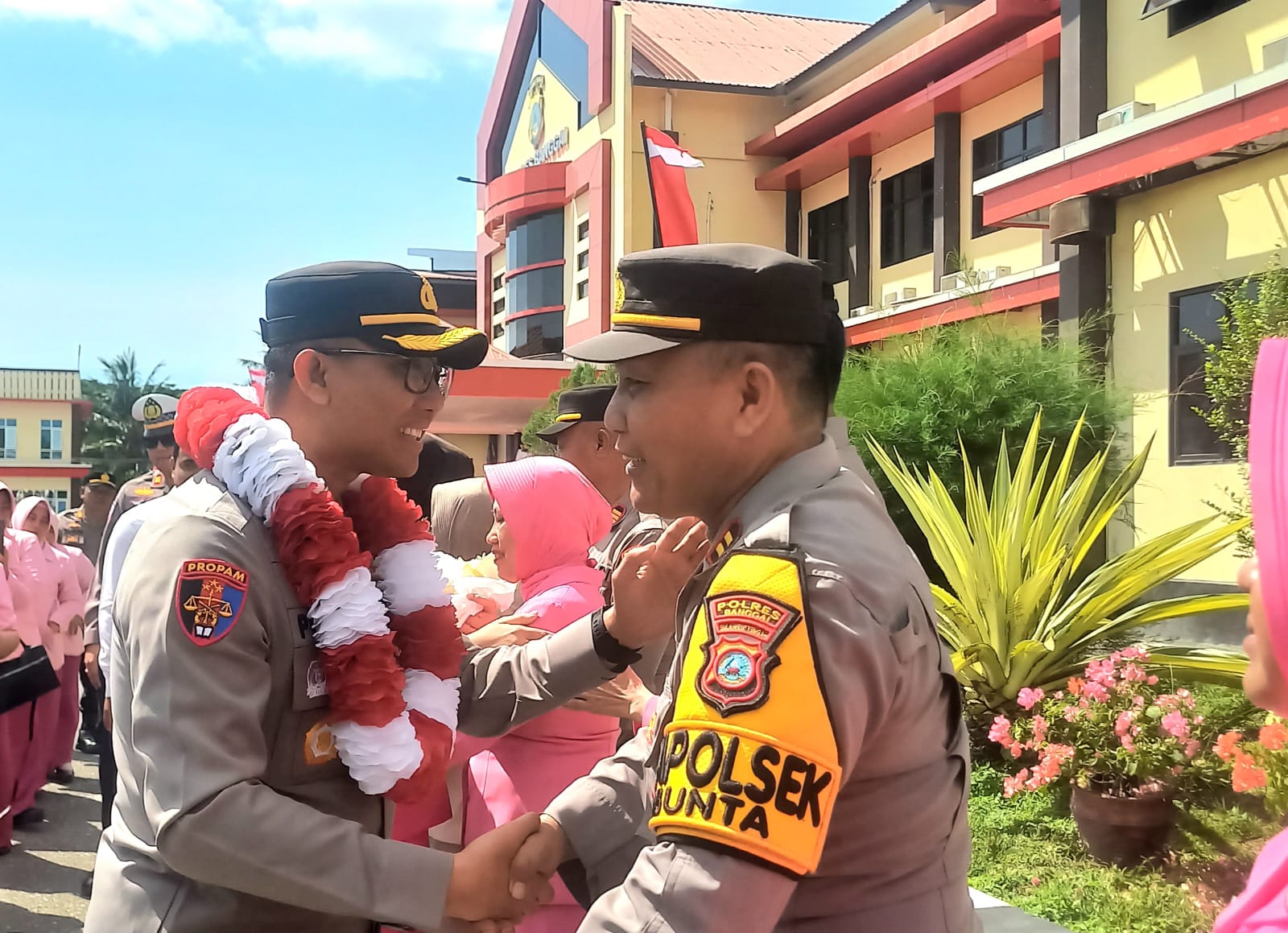Kapolsek Bunta mengucapkan selamat datang Kapolres baru AKBP Wayan Wayracana Aryawan dan selamat jalan Kapolres lama AKBP Putu Hendra Binangkari dan selamat bertugas di tempat yang baru.