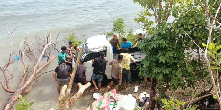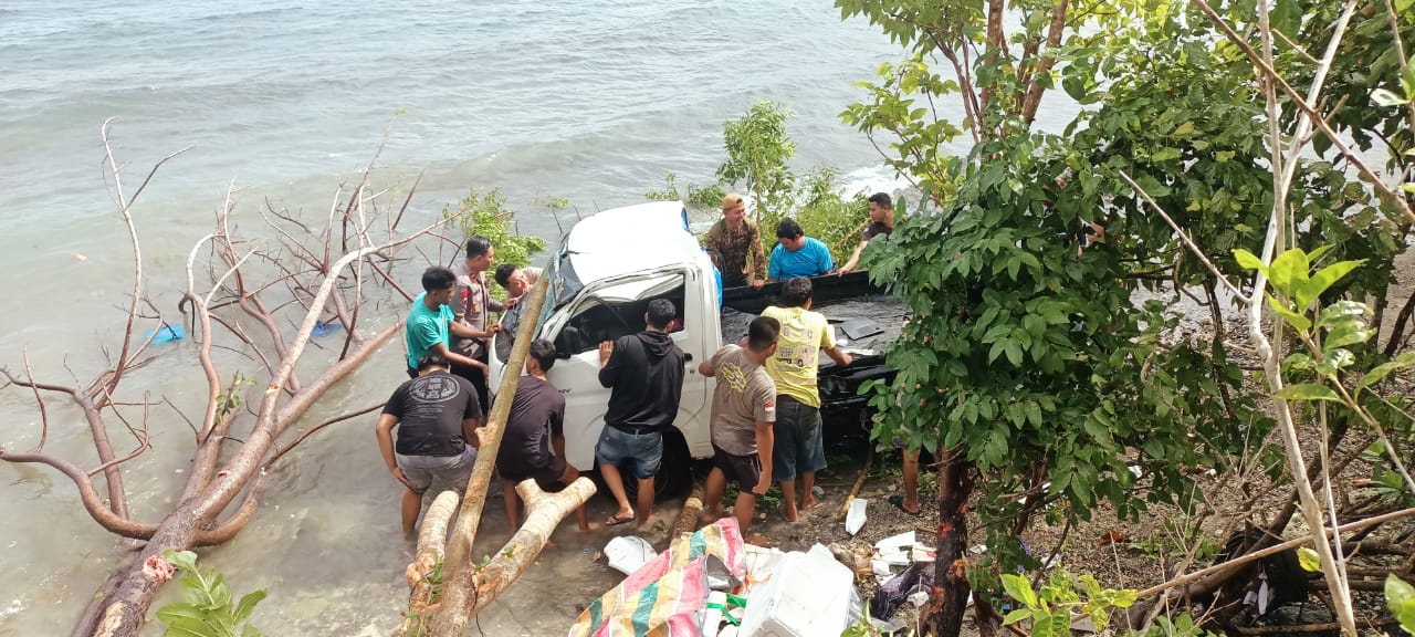 Saat melewati TKP pukul 08.15 Wita dengan jalan tikungan menurun, tetiba sopir hilang kendali dan akhirnya kendaraan Pickup tersebut masuk ke dalam jurang.