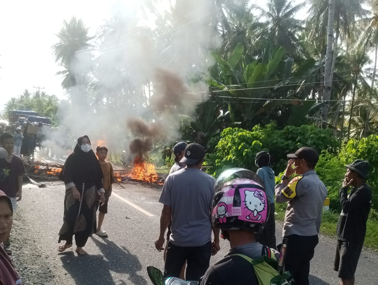 KILASBANGGAI.COM, BATUI- Sejumlah warga yang didominasi emak-emak memblokade Jalan Trans Sulawesi di jembatan Kelurahan Bakung, Kecamatan Batui, Kabupaten Banggai, Sulawesi Tengah, Sabtu, (8/2/2025).