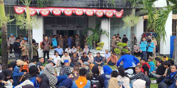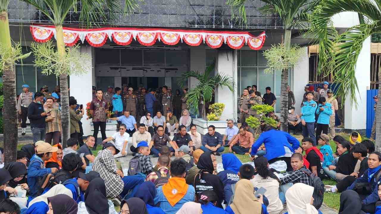 KILASBANGGAI.COM,LUWUK- Ratusan mahasiswa Kabupaten Banggai melakukan aksi demonstrasi di Kantor DPRD Banggai pada Kamis, (28/8/2025). Aksi yang berlangsung tegang ini membuat Ketua DPRD Banggai dan sejumlah anggota DPRD lainya tak berdaya menghadapi gelombang kritik dari para mahasiswa.