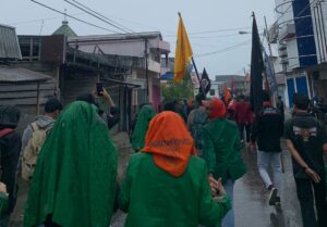 KILASBANGGAI.COM, LUWUK – Diguyur hujan tak menyulutkan semangat ratusan Mahasiswa melakukan aksi demonstrasi di Kota Luwuk. Jumat, (23/8/2024)