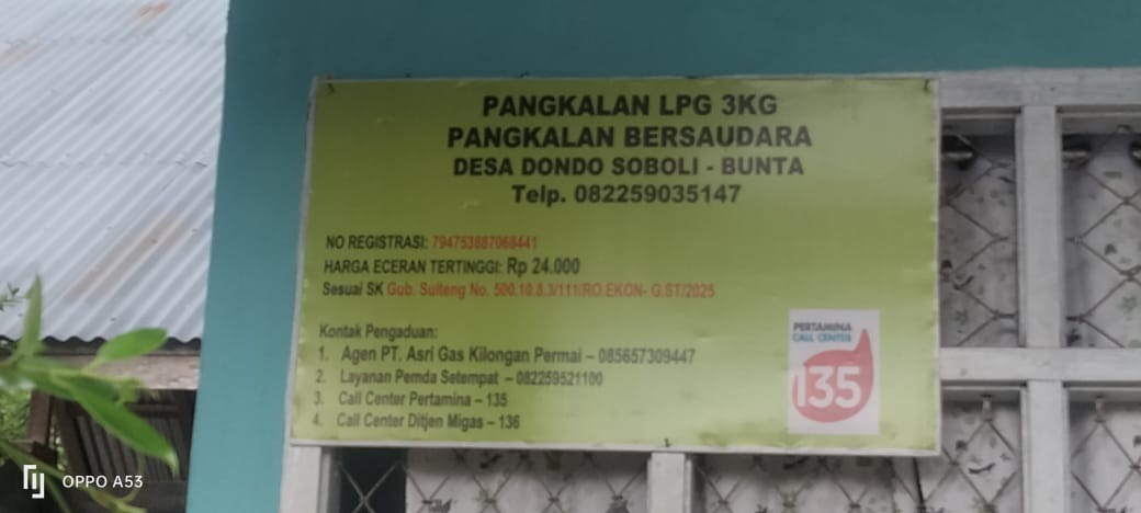 Pangkalan tersebut adalah pangkalan LPG 3 kg BERSAUDARA di Desa Dondo Soboli, Kecamatan Bunta.