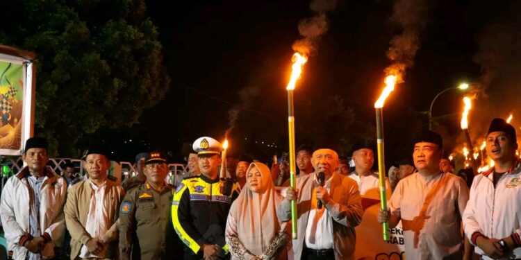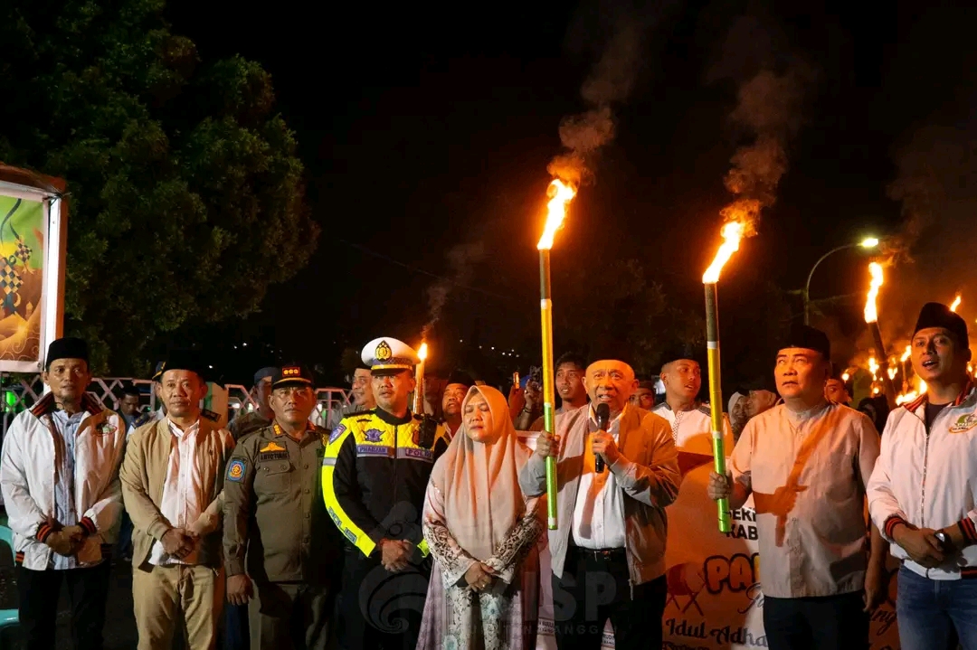 Penyalaan obor dan kumandang takbir dari Wabup Furqanuddin memandu para peserta pawai sebelum dilepas secara resmi.