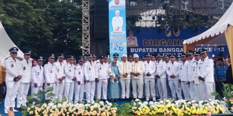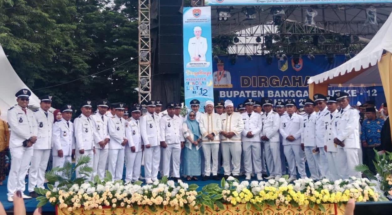 KILASBANGGAI.COM,BANGGAI— Pemerintah Kabupaten Banggai Laut (Balut) memperingati HUT ke-12 dengan upacara khidmat di Alun-alun Taman Kota Banggai, Sabtu (14/12/2024).