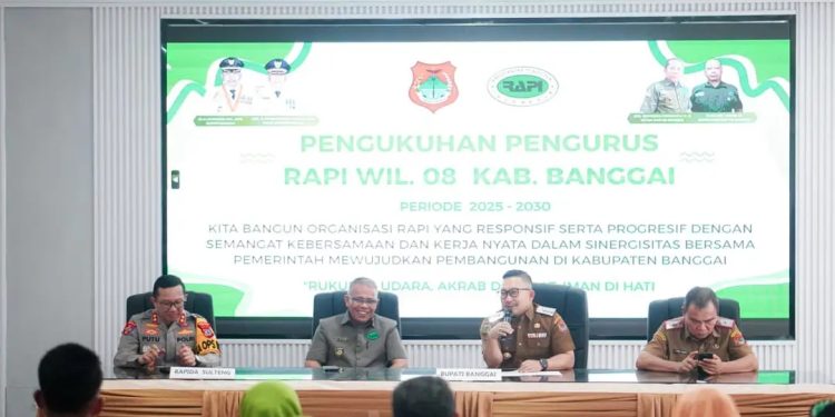 KILASBANGGAI.COM, LUWUK – Bupati Banggai Ir. H. Amirudin, S.P., M.M, mengukuhkan Pengurus Wilayah 08 Radio Antar Penduduk (RAPI) Periode 2025-2030 pada Senin (8/12/2025) di Aula Kantor Dinas Perpustakaan & Kearsipan Kabupaten Banggai