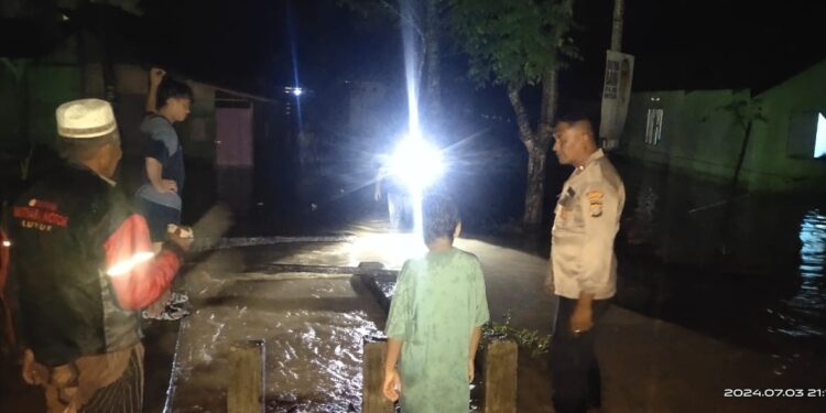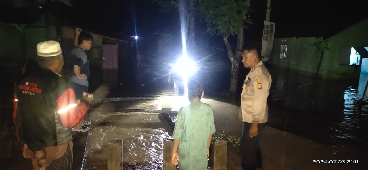 KILASBANGGAI.COM – Polisi terjun langsung mendatangi rumah warga yang digenangi air akibat curah hujan yang tinggi di Kecamatan Bunta, Kabupaten Banggai, Rabu (4/7/2024) malam.