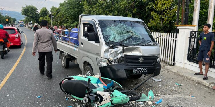 “Kendaraan yang terlibat antara Sepeda Motor Yamaha Fino hijau DN 5277 RD kontra Pick up Suzuki Carry Silver DN 8680 CS,” ungkap Kapolsek Kintom AKP Nanang Afrioko.