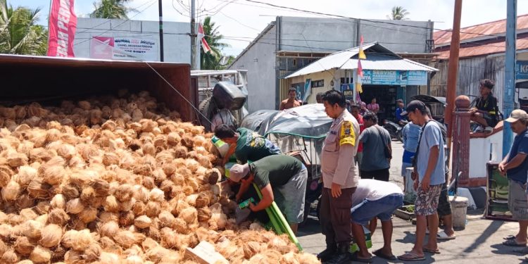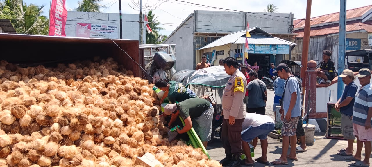 Polisi Evakuasi Truk Muat Kelapa Terguling di Bunta, Banggai