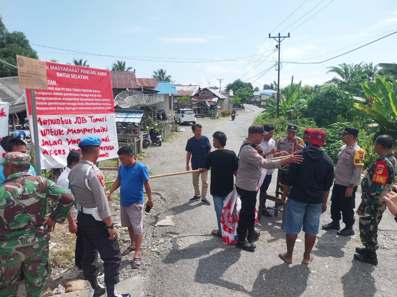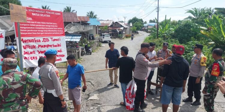 KILASBANGGAI.COM – Sikapi aksi pemalangan jalan menuju Sumur 2 perusahaan JOB Tomori di Pertigaaan Desa Gori-gori Kecamatan Batui Selatan, Banggai yang di lakukan oleh Aliansi Masyarakat Pencari Kerja, Selasa (7/1/2025) sekira jam 07.00 Wita.