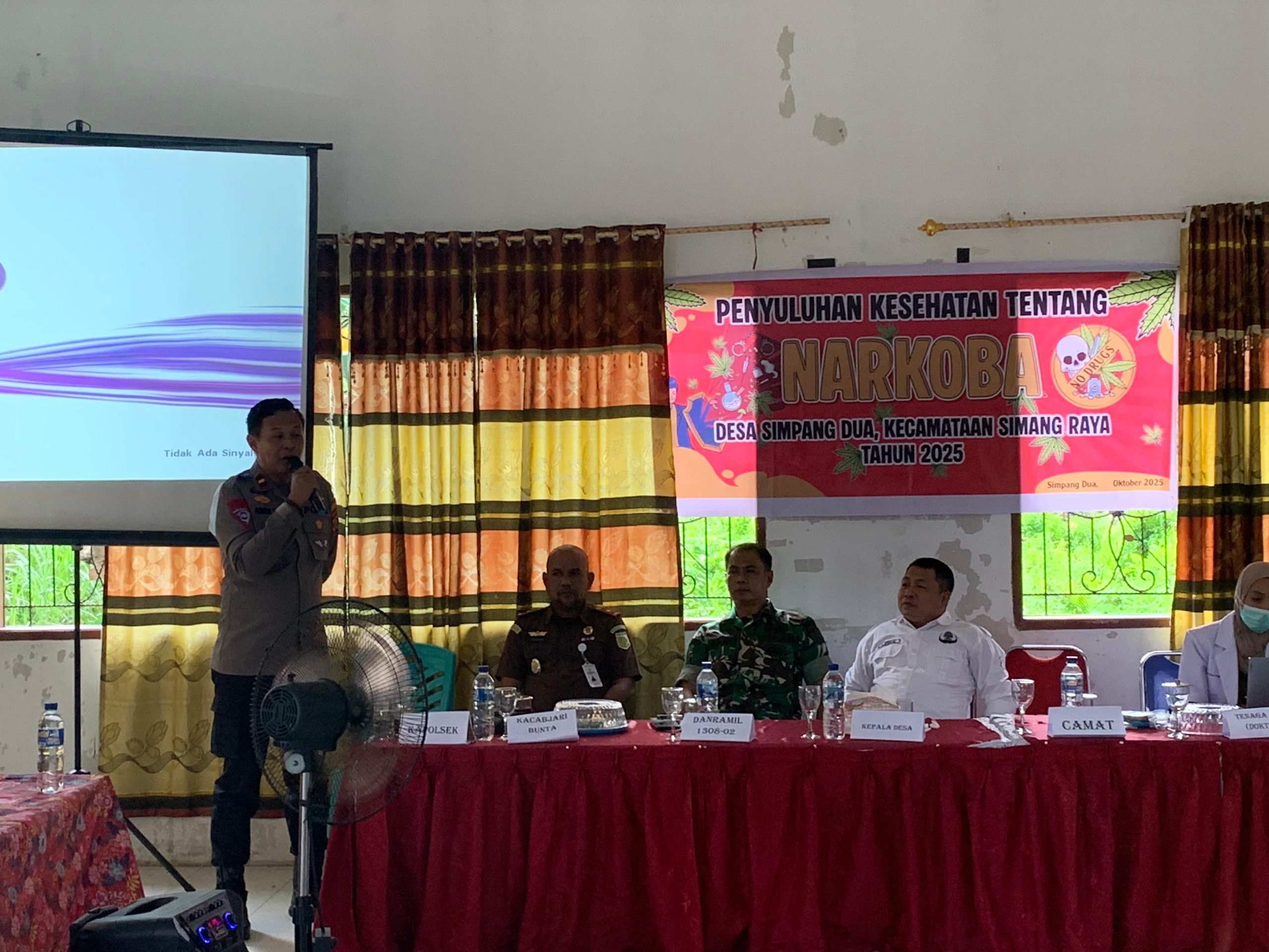 KILASBANGGAI.COM – Polsek Bunta jajaran Polres Banggai melaksanakan Sosialisasi dan Penyuluhan Bahaya Penyalahgunaan Narkoba. Kegiatan ini digelar di Balai Desa Simpang Dua Kecamatan Simpang Raya, Banggai, pada Kamis (23/10/2025) pagi.