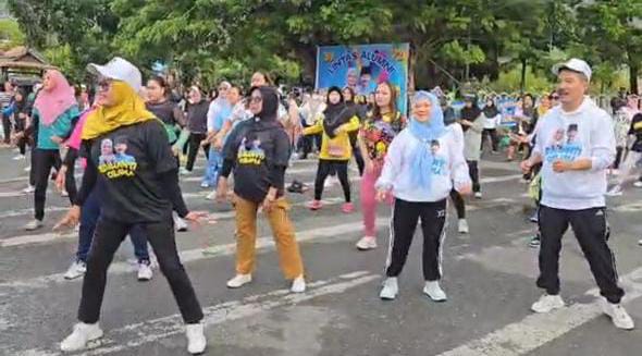 Ratusan Warga Ikut Senam Gemoy Ala Sulianti Murad-Samsul Bahri Mang di Teluk Lalong