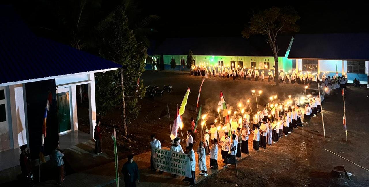 KILASBANGGAI.COM,TOILI BARAT – Cahaya obor menyinari jalanan Desa Uwelolu, Kecamatan Toili Barat, Kabupaten Banggai, pada Minggu (15/2/2026) malam. Ratusan santri dari Yayasan Pondok Pesantren Fathul Hikam Al Mubarak NW tumpah ruah ke jalan dalam aksi pawai obor tradisional guna menyambut datangnya bulan suci Ramadhan 1447 H.