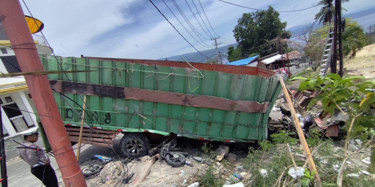 KILASBANGGAI.COM,LUWUK- Kesibukan masyarakat jelang berbuka puasa di Kelurahan Tombang Permai, Luwuk Selatan, Kabupaten Banggai seketika pecah oleh dentuman keras sebuah truk besar yang hilang kendali.