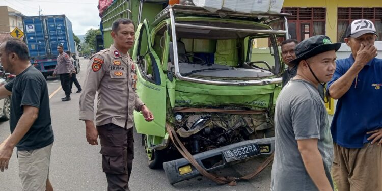 KILASBANGGAI.COM,NAMBO-Sebuah truk muatan mengalami kecelakaan dan menabrak mobil kontainer di Jalan Trans Sulawesi Desa Lontio Kecamatan Nambo, Banggai, Rabu (9/7/2025). Beruntung, tidak ada korban jiwa dalam insiden tersebut.