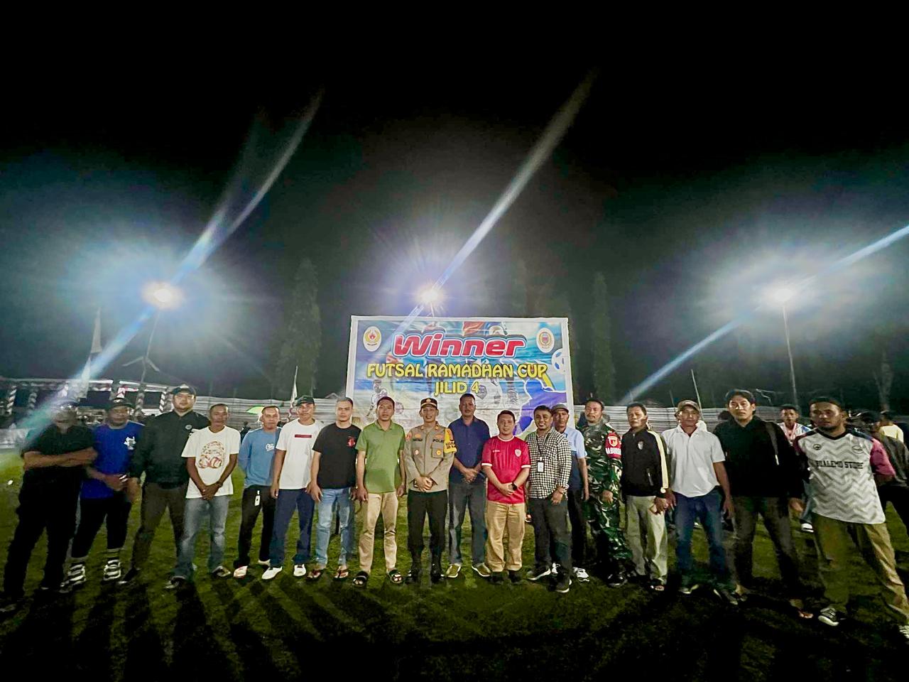 KILASBANGGAI.COM,BUALEMO- Turnamen Futsal Ramadhan Cup 2025 Resmi di tutup, turnamen tersebut ditutup langsung oleh Camat Bualemo, Syam Irmanto Titong di Lapangan Udara Tompotika, Desa Bualemo B, Kecamatan Bualemo, Kabupaten Banggai, Sulawesi Tengah, Senin,(14/4/2025).