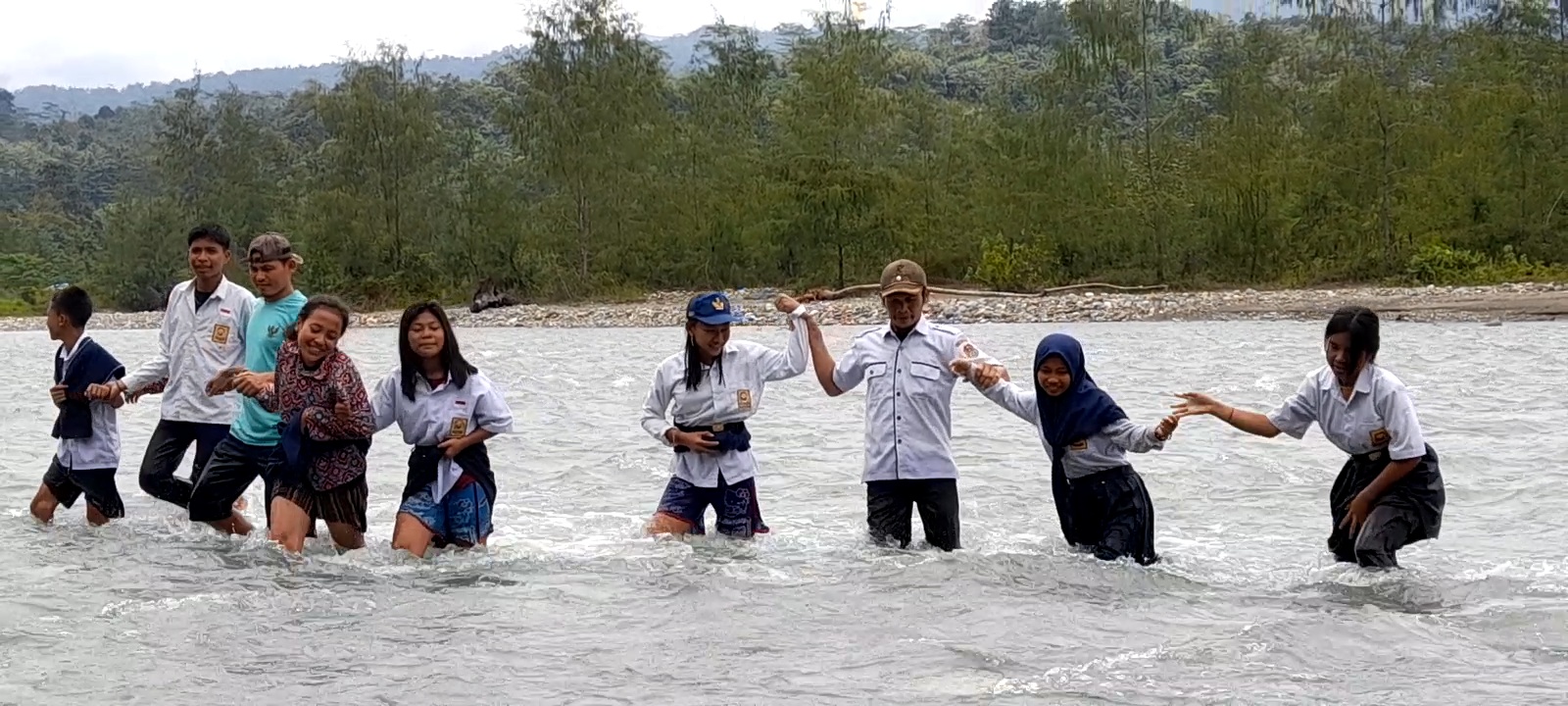 Ketika musim penghujan tiba seperti saat ini, para siswa tidak dapat bersekolah selama berhari-hari akibat banjir dan derasnya arus sungai. Sebagian dari para siswa ada pula yang nekat bertaruh nyawa menyebrangi sungai dengan bantuan orang tuanya. Kegiatan ini telah berlangsung lama dan telah menelan korban pula. “Kami butuh jembatan”, agar kami bisa sekolah. Tutur salah satu siswa (Juli, 2024).