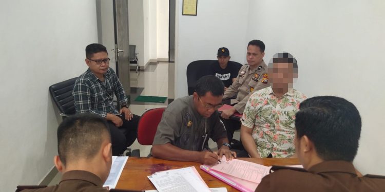 Penyerahan tersangka dan barang bukti diterima langsung Kasi Pidus Ikhwal Sainul, SH, MH dan Jaksa Fungsional Hendra Polrak Tafona’o, SH.