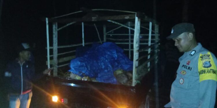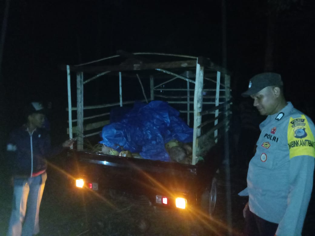 “Terduga kedapatan sedang mengangkut kelapa biji milik Atip di Perkebunan Lidjo menggunakan mobil Suzuki Carry Pick Up warna hitam DN 1460 KG,” terang Danang.