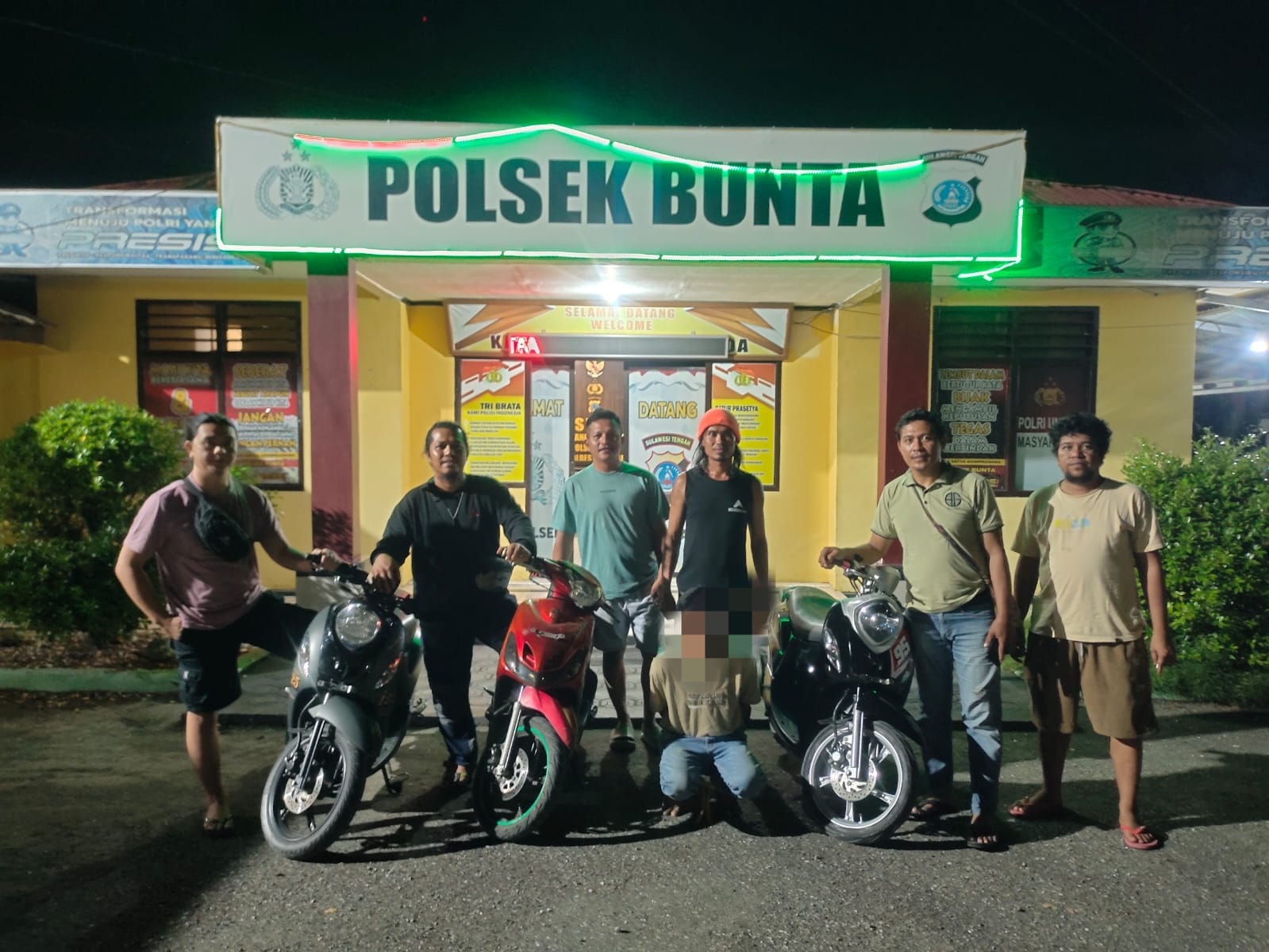 Setelah diamankan di Polsek Bunta, pelaku beserta barang bukti berupa tiga unit sepeda motor yakni Yamaha Mio Sporty warna merah, Yamaha Ini warna hitam dan Yamaha Fino Sporty warna hitam diserahkan kepada tim opsnal Satreskrim Polres Touna untuk proses hukum lebih lanjut.