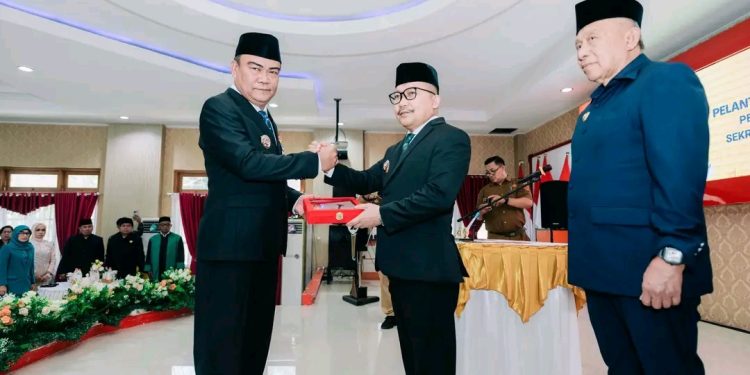KILASBANGGAI.COM – Bupati Banggai, Ir. H. Amirudin, MM., AIFO resmi melantik Ir. Moh. Ramli Tongko, S.Sos., S.T., M.Si, sebagai Sekretaris Daerah Kabupaten Banggai definitif, pada Senin (29/9/2025), bertempat di Ruang Rapat Umum Kantor Bupati Banggai.