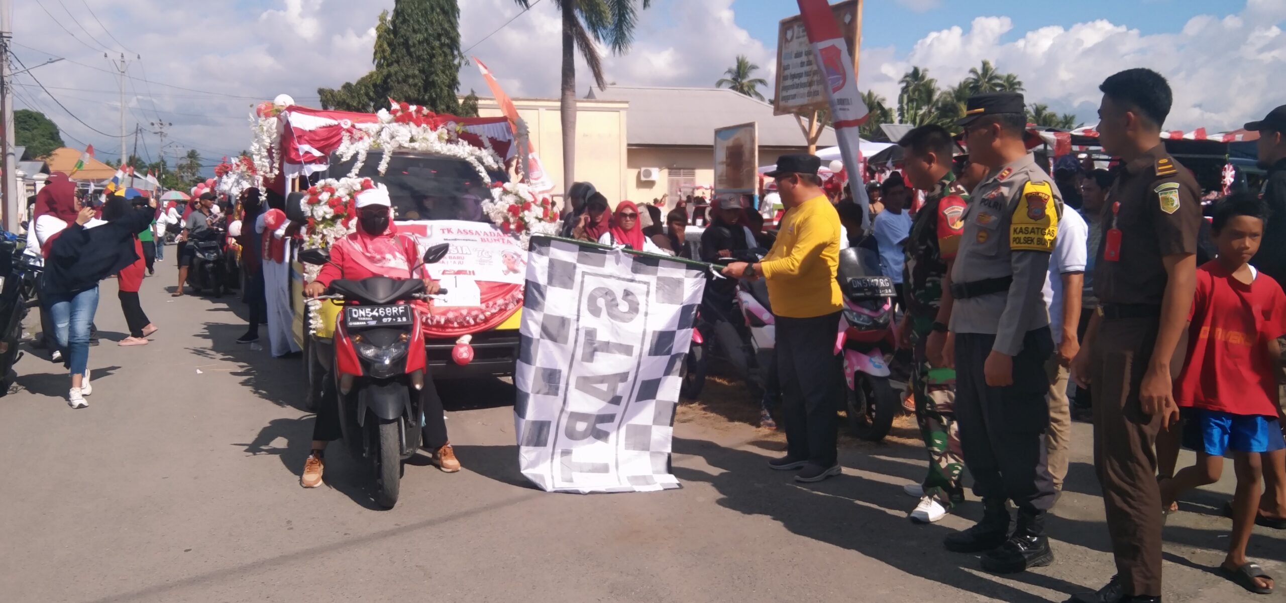 Dalam sambutannya, Camat Buhari menyampaikan bahwa kegiatan karnaval adalah salah satu rangkaian kegiatan penyambutan HUT ke-79 RI.
