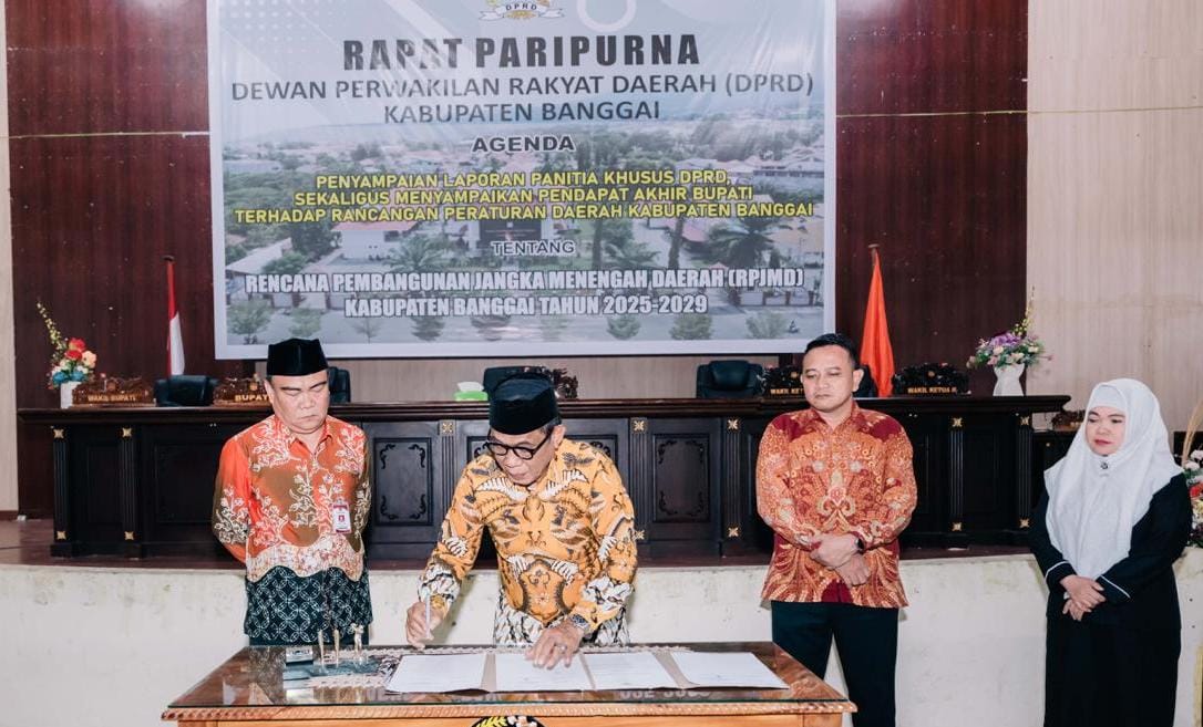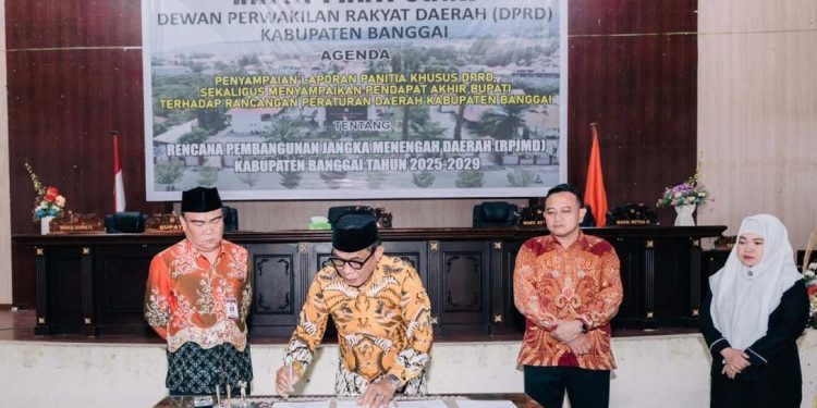 KILASBANGGAI.COM, LUWUK – Setelah melakukan pembahasan mendalam, DPRD Kabupaten Banggai akhirnya menyepakati rancangan akhir RPJMD Banggai 2025-2029 melalui Peraturan Daerah Kabupaten Banggai tentang Rencana Pembangunan Jangka Menengah Daerah (RPJMD) Kabupaten Banggai Tahun 2025-2029.