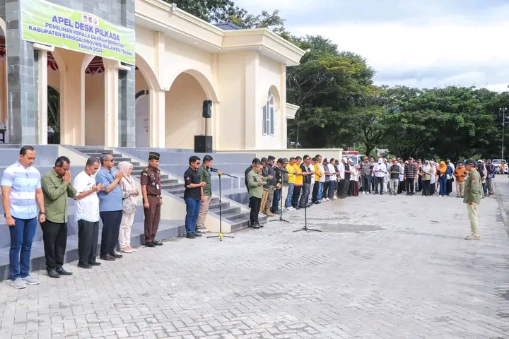 Sosialisasi yang dihadiri oleh ASN dan tenaga honorer tersebut disampaikan dalam Apel Bersama Desk Pilkada, Jumat (23/9/2024) pagi, di Lapangan Mirqan Kompleks Kantor Bupati Banggai, Luwuk Selatan.