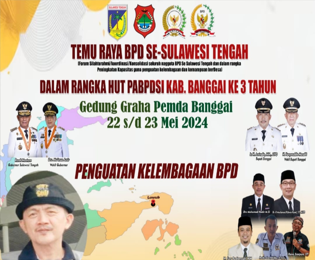 Dalam kegiatan dimaksud juga akan dilaksanakan Deklarasi PABPDSI Provinsi Sebagai wadah dan rumah besar BPD di wilayah Sulawesi Tengah.